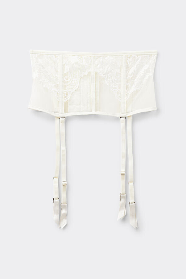 pas do pończoch w stylu gorsetu, wykonany z koronki typu eyelash i tiulu, z zmysłowymi fiszbinami wyściełanymi mikrofibrą. noszony na koszuli lub obcisłym topie staje się efektownym dodatkiem.