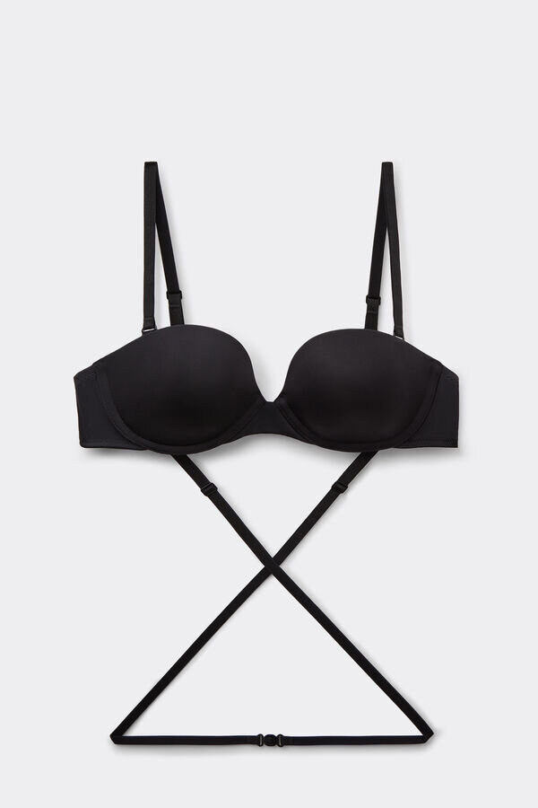 wielofunkcyjny biustonosz typu balconette marki Anna, wykonany z miękkiej, ultralekkiej Microfibry Ultralight. Podszewka fiszbinowa wykonana jest z silikonu, dzięki czemu lepiej przylega do ciała. Zestaw ramiączek pozwala na tworzenie różnych stylizacji i dostosowanie biustonosza do własnych potrzeb dzięki czterem możliwym modyfikacjom, które zostały zilustrowane w dołączonej broszurze: biustonosz standardowy, biustonosz standardowy z niskim tyłem, biustonosz typu halter, biustonosz typu halter z niskim tyłem. W zestawie znajduje się również zestaw przezroczystych ramiączek framilon, które zapewniają niewidoczny efekt pod ubraniem. Klienci, którzy zazwyczaj kupują miseczki inne niż rozmiar b (a-c-d-e-f), mogą kupić miseczkę o rozmiarze odpowiadającym obwodowi klatki piersiowej i dostosować dopasowanie gorsetu, regulując ramiączka.