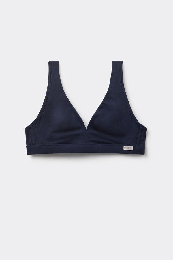Nasz bawełniany biustonosz trójkątny Lara to niezbędny element codziennej garderoby, zaprojektowany z myślą o miękkości i prostocie. Wykonany z elastycznej bawełny, stanowi naturalnie lekki element bielizny, który jest przewiewny i delikatny dla skóry. Ten bezusztywniany, nieusztywniany biustonosz trójkątny zapewnia gładką sylwetkę, która dyskretnie układa się pod ubraniem, stanowiąc wybór łączący miękkość z dyskretnym wsparciem na co dzień. Szerokie ramiączka płynnie przechodzą z miseczek, zapewniając czyste, podtrzymujące dopasowanie, a regulowane zapięcia z tyłu pozwalają dopasować biustonosz do sylwetki. Subtelne fiszbiny po bokach i bawełniana taśma pod biustem pomagają podtrzymać biust, a ukryte wzmocnienie z siateczki w wybranych rozmiarach zapewnia modelowanie tam, gdzie jest to najbardziej potrzebne. Od elastycznej bawełny po ukryte wzmocnienie z siateczki – każdy szczegół współgra, zapewniając lekkie modelowanie i wygodę przez cały dzień. Ten bawełniany biustonosz z szerokimi ramiączkami to element garderoby, po który będziesz sięgać najczęściej, wprowadzając wygodę, komfort i elegancję Intimissimi do swojej codzienności.