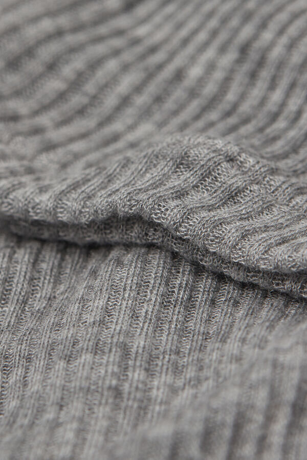 bluzka z miękkiej dzianiny prążkowanej z mieszanki modalu i kaszmiru. lekka i dopasowana, może być noszona samodzielnie lub pod kurtką dzięki zmysłowej przezroczystości i płynnemu, lejącemu się krojowi. dla osób, które łatwo marzną, może być wygodną bluzką do noszenia pod ubraniem.