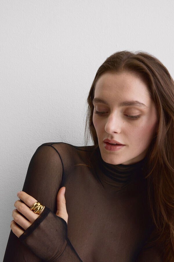 body z tiulu, które można nosić jako zmysłowy top, zachwycający swoją przezroczystością, idealne również do tworzenia stylizacji i warstwowych zestawów na wiele okazji. Otwory na kciuki tworzą efekt rękawiczek bez palców. Materiał jest niezwykle miękki, przylegający i bardzo wygodny.