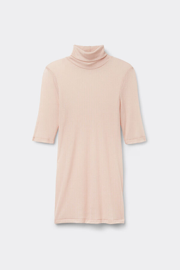 bluzka o konstrukcji rurowej, wykonana z miękkiej dzianiny prążkowanej z mieszanki modalu i kaszmiru, idealna do noszenia pod kurtką lub samodzielnie, aby uzyskać swobodny, a jednocześnie zmysłowy i kobiecy wygląd.