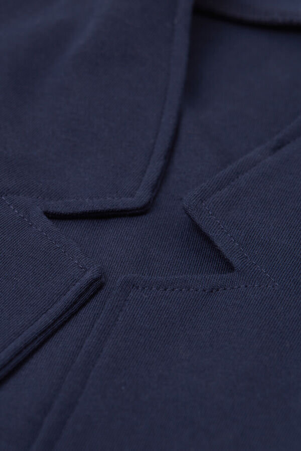 kardigan z długim rękawem o wyglądzie kurtki, wykonany z grubej bawełnianej dzianiny interlockowej.