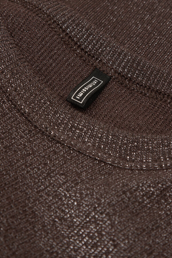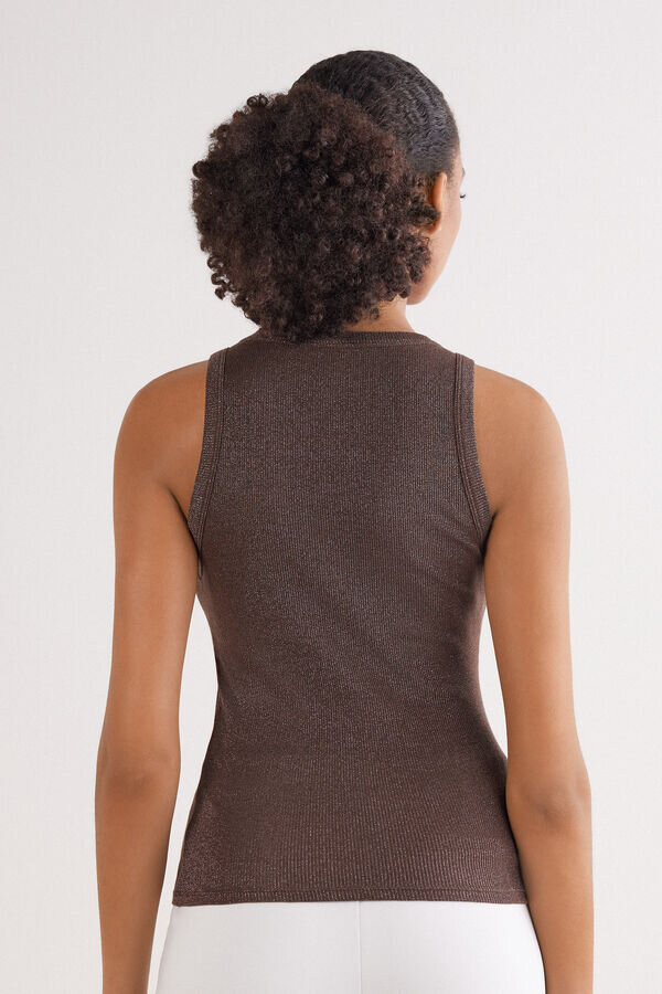 koszulka bez rękawów z prążkowanej bawełny lamé z okrągłym dekoltem.