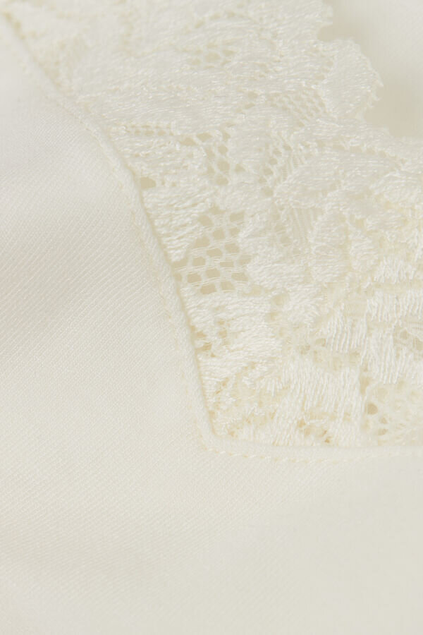 koszulka z dekoltem w serek, wykonana z modalu i ozdobiona koronkową falbaną. w zależności od wybranego koloru koronka może być w kontrastowym kolorze lub w tym samym odcieniu. cienkie ramiączka podszyte mikromodalem.