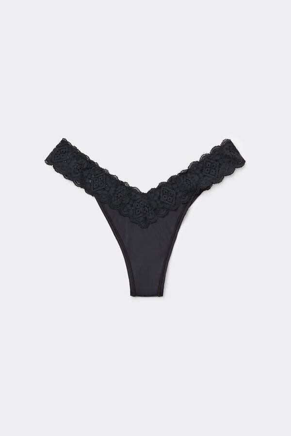 Brazilian style briefs made from soft microfiber with a lace waistband. Wkładka wewnętrzna 100% bawełna