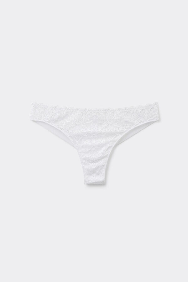 te koronkowe majtki Brazilian z mikrofibry łączą eleganckie detale z komfortem podwójnej warstwy mikrofibry. dzięki elastycznej koronce z delikatnym geometrycznym wzorem i romantycznymi falbankami te koronkowe majtki Brazilian łączą kobiece detale z praktycznością. Miękka, podwójna warstwa mikrofibry z tyłu zapewnia gładkie, bezszwowe dopasowanie pod ubraniem, łącząc styl i praktyczność. Nowoczesny krój z wysokim stanem sięga wysoko na biodra, podkreślając kobiecość i eksponując kształty, a jednocześnie zapewniając dobre pokrycie i bezpieczeństwo. Niezależnie od tego, czy nosisz je w zestawie z dopasowanym biustonoszem, czy samodzielnie, te koronkowe figi Brazilian są niezbędnym dodatkiem do Twojej kolekcji bielizny. Odkryj ponadczasowe piękno z Intimissimi. Dostępne w szerokiej gamie kolorów, pasujących do każdego stroju.