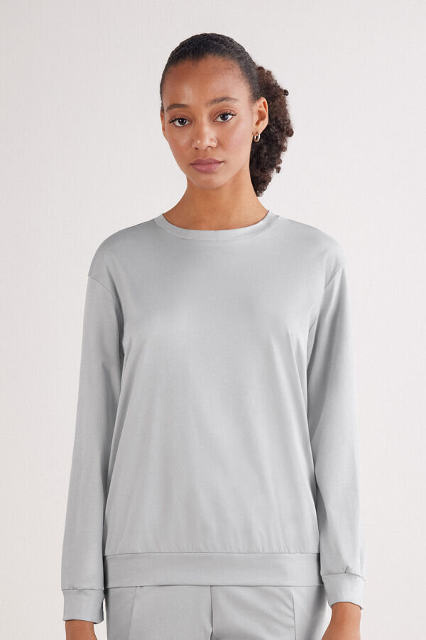 bluzka wykonana z bardzo miękkiej, świeżej i jedwabiście delikatnej bawełny. Bardzo wygodna i przyjemna w noszeniu, idealna do stylizacji podstawowych i casualowych, doskonale nadaje się do noszenia na noc, ale może być również noszona jako bluza domowa lub w czasie wolnym.