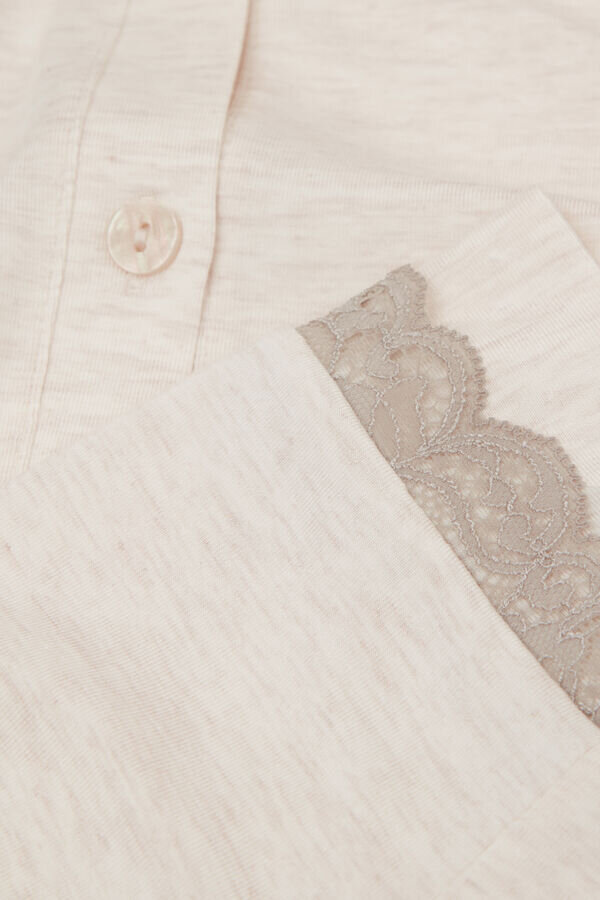 długa piżama z miękkiego modalu z romantyczną koronkową falbaną. górę można również nosić rozpiętą i wykorzystać jako domową kurtkę w połączeniu z topem.