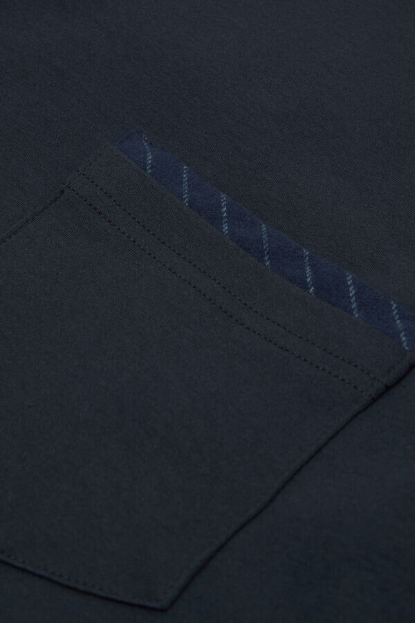 długa piżama z bawełnianego interlocku z jednolitym topem z kieszenią z nadrukiem w prążki. długie spodnie w prążki.
