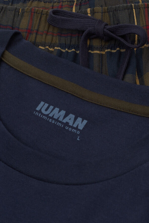krótka piżama z miękką koszulką z dzianiny bawełnianej w jednolitym kolorze z kieszenią w kratę. bawełniane szorty w kratę.