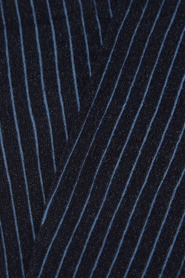 długie skarpety wykonane z prążkowanej merceryzowanej bawełny lisle z efektem niebieskich pionowych pasków. wyjątkowo lekka, przewiewna i świeża przędza. klasyczny styl skarpet.